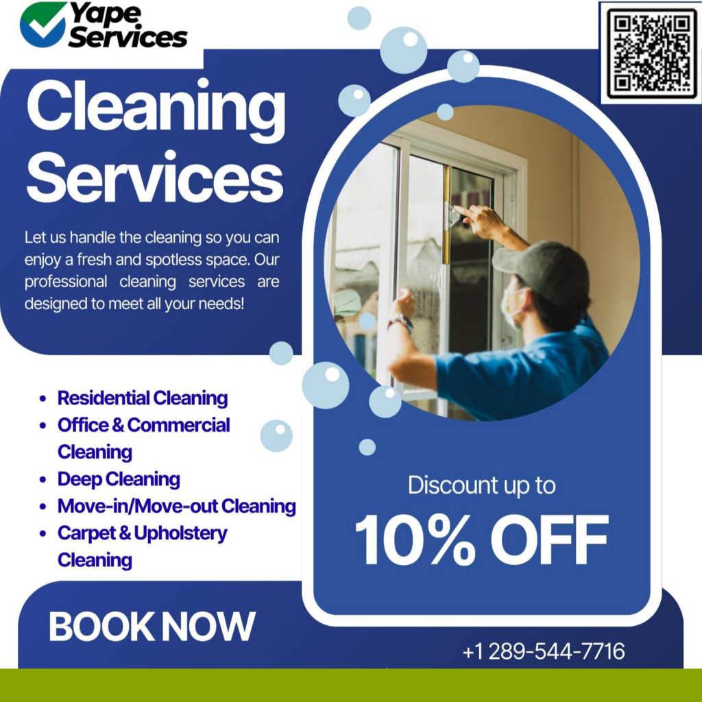 Yape Services Inc propose des services de nettoyage résidentiel et commercial adaptés aux particuliers et aux entreprises à Toronto, Mississauga, Peel Region, North York, Durham et Newmarket.